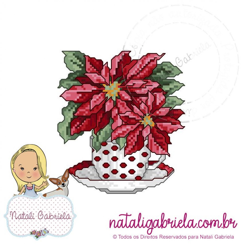 Matriz de poinsetia em ponto cruz para bordar à máquina.